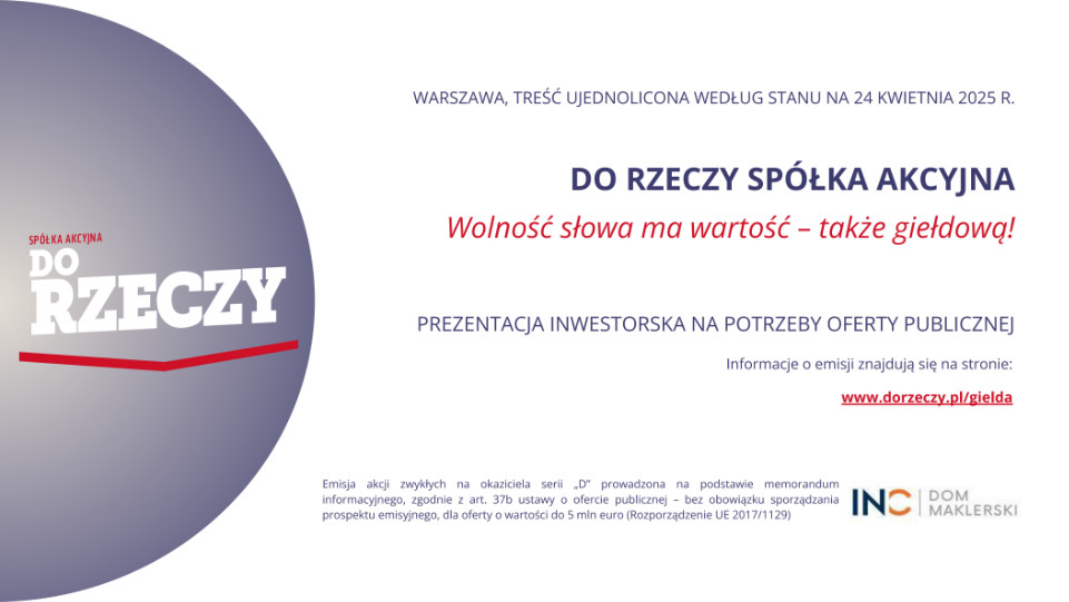 Zainwestuj w prawdziwą wolność słowa. Trwają zapisy na akcje Do Rzeczy S.A. – zostań inwestorem i wspólnie z nami twórz niezależne media. To nie tylko kapitał, to misja.
