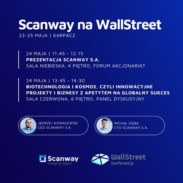 Scanway S.A. to polska firma działająca od 9 lat. Specjalizuje się w łańcuchu danych optycznych obejmującym: akwizycję, przetwarzanie, analitykę oraz predykcję zdarzeń na ich podstawie. W segmencie Space, firma dostarcza zarówno rozwiązania hardwarowe (instrumenty optyczne, np. teleskopy, kamery), jak i analitykę do obrazowania. W segmencie Industry, oferuje rozwiązania (produkty) oparte na przetwarzaniu danych obrazowych, w tym: kompletne systemy do kontroli jakości. Kompetencje i doświadczenia Spółki w obu dziedzinach są komplementarne i tworzą synergie. Scanway dąży do zapewnienia klientom pełnego dostępu do kluczowych danych optycznych w obu segmentach.